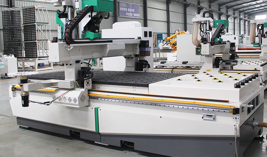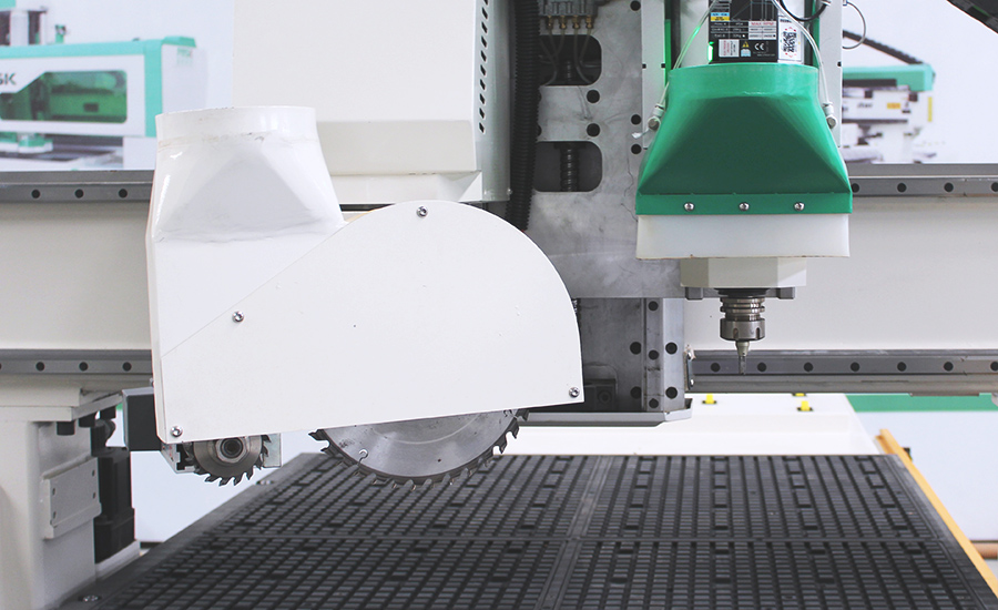 數(shù)控四邊鋸加工中心主要用于實木門規(guī)方,板式及實木家具生產(chǎn),全鋁家具下料,非金屬材料的鉆孔、雕刻、切割等工序。機(jī)器配備的旋轉(zhuǎn)鋸可進(jìn)行任意角度切割,配備的自動換刀主軸搭配大容量刀庫能夠進(jìn)行雕刻、銑型、鉆孔、切割下料等。