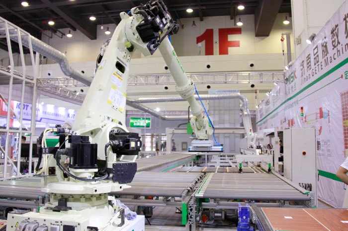 個(gè)性化定制化柔性板式家具生產(chǎn)線是將機(jī)器人,數(shù)控開(kāi)料機(jī) 數(shù)控六面鉆 封邊機(jī)組成一條板式家具生產(chǎn)線,品脈定制家具工業(yè)4.0智能生產(chǎn)線 主要是以無(wú)人化工廠為主,打造工業(yè)4.0的生產(chǎn)線,把 開(kāi)料、封邊、鉆孔、分揀、包裝等流程一體化 ,從而實(shí)現(xiàn)無(wú)人式的工廠生產(chǎn)模式。整套定制家具工業(yè)4.0硬件部分涵蓋 開(kāi)料設(shè)備、多軸搬運(yùn)機(jī)器人、封邊回轉(zhuǎn)線系統(tǒng)、動(dòng)力傳輸線、龍門(mén)抓料機(jī)、六面鉆打孔設(shè)備、自動(dòng)分揀系統(tǒng) 等通過(guò)總控系統(tǒng)與智能軟件控制實(shí)現(xiàn)自動(dòng)化生產(chǎn)。 可以降低企業(yè)人工成本,降低廢品率和產(chǎn)品成本,減少工藝過(guò)程中的工作量及降低停產(chǎn)時(shí)間和庫(kù)存等優(yōu)點(diǎn)。從而提高企業(yè)競(jìng)爭(zhēng)力,增加企業(yè)經(jīng)濟(jì)效益。